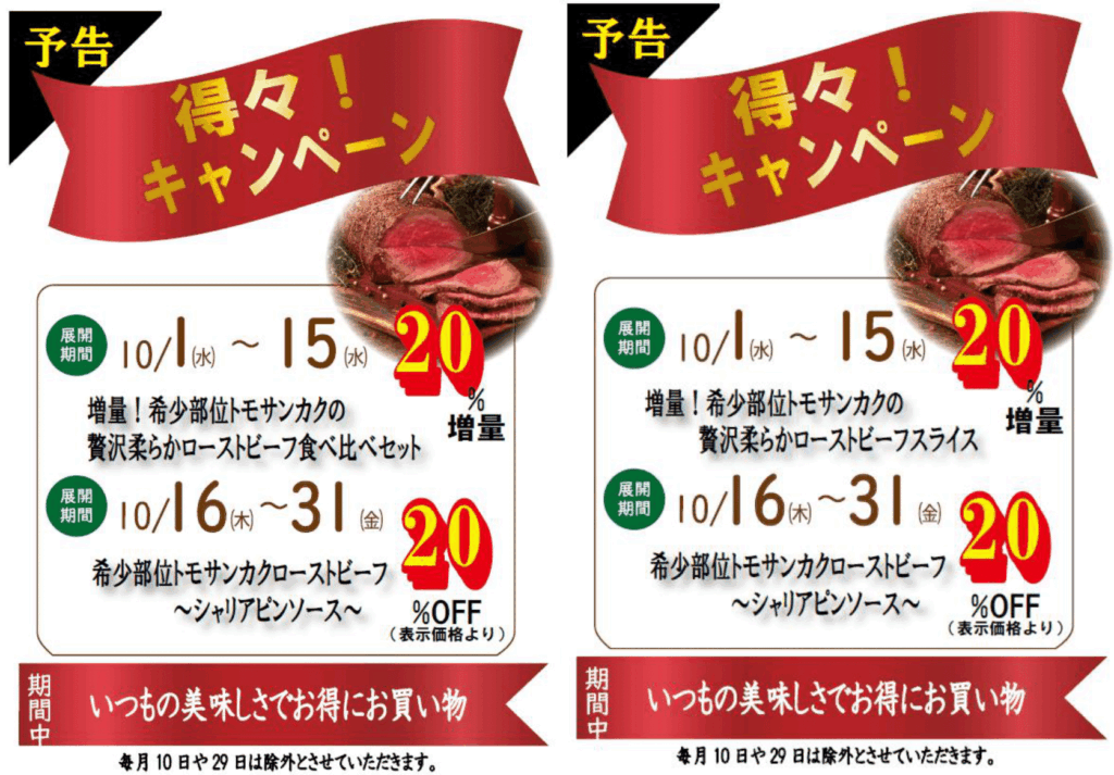 10月の得々!増量キャンペーンのご案内